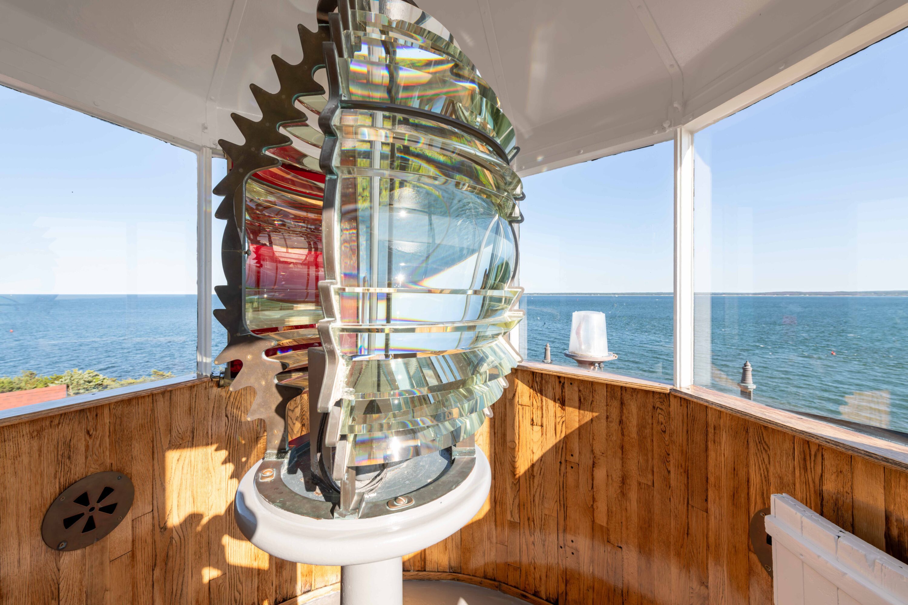 Restoration of the iconic Nobska Lighthouse in Woods Hole. Preservation of the Historic Interior and Exterior. The Cast Iron Rings on the Lighthouse Exterior, wood windows and